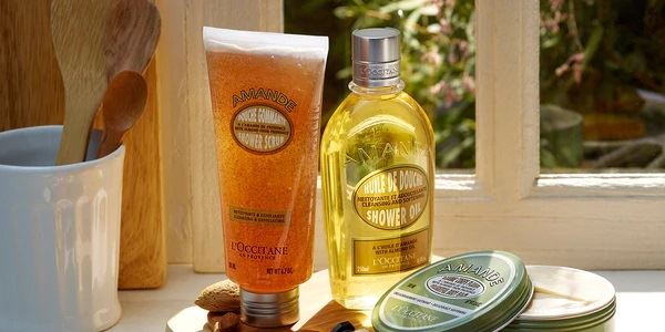 2. Rincez et utilisez l'Huile de Douche Amande pour nettoyer et préserver l'hydratation de votre peau.